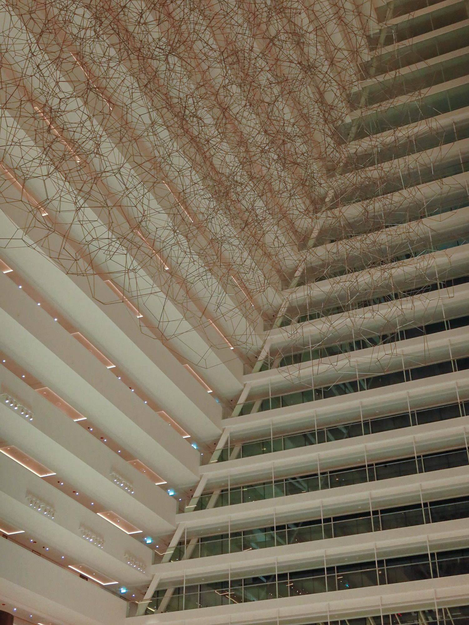 Repetition and layered structure create a calm, ordered atmosphere within a modern interior space.