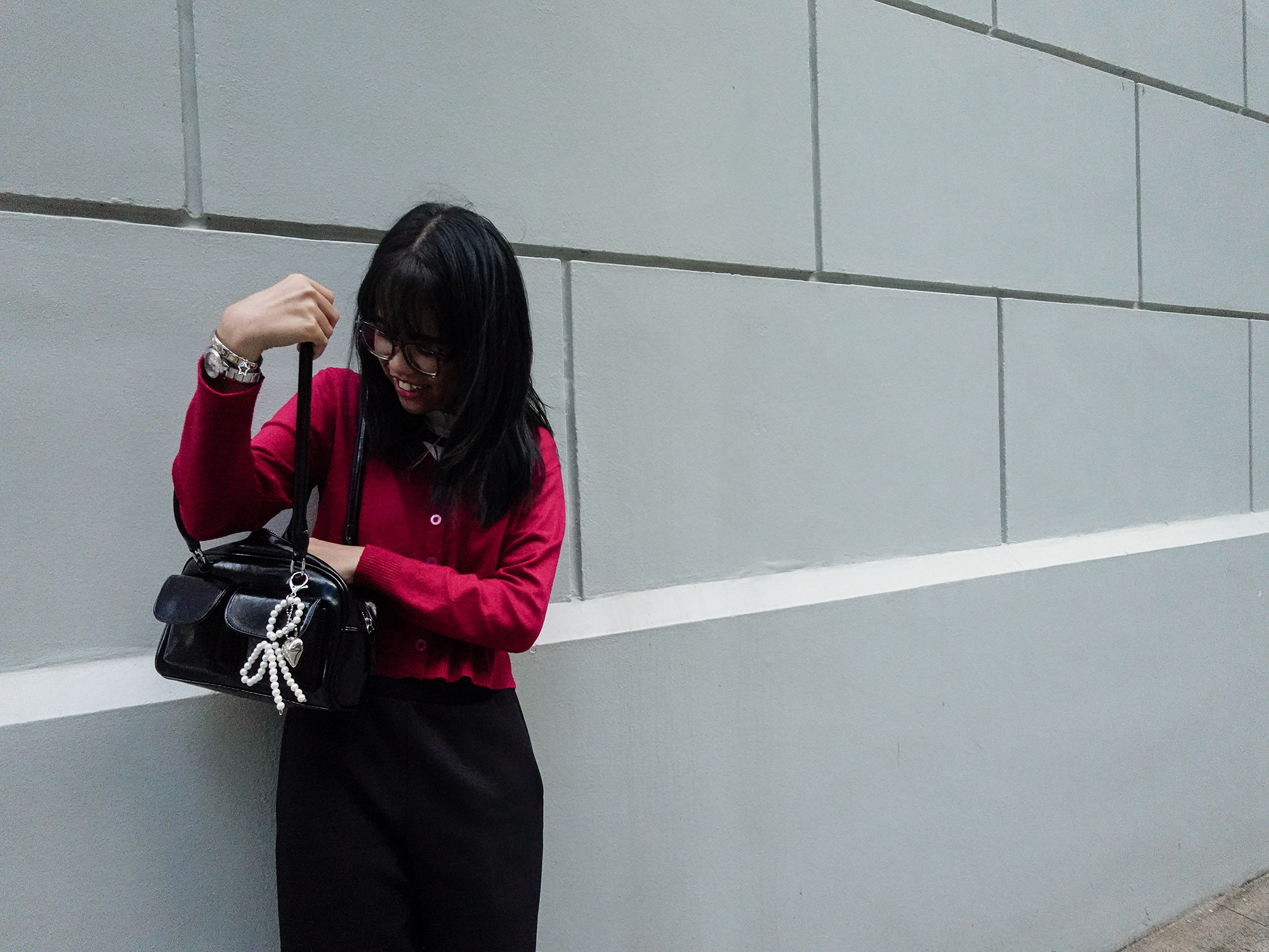 LA candid lifestyle moment capturing everyday interaction with personal style in an urban setting.