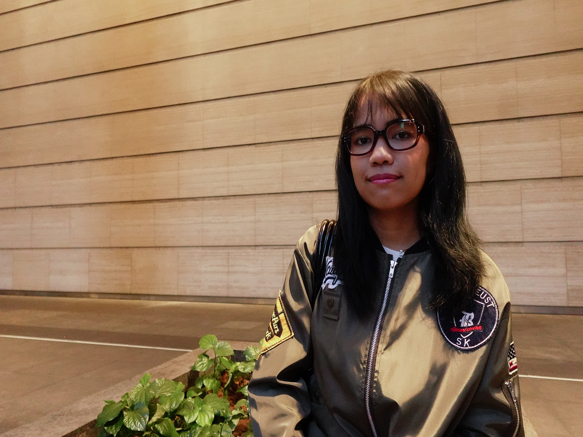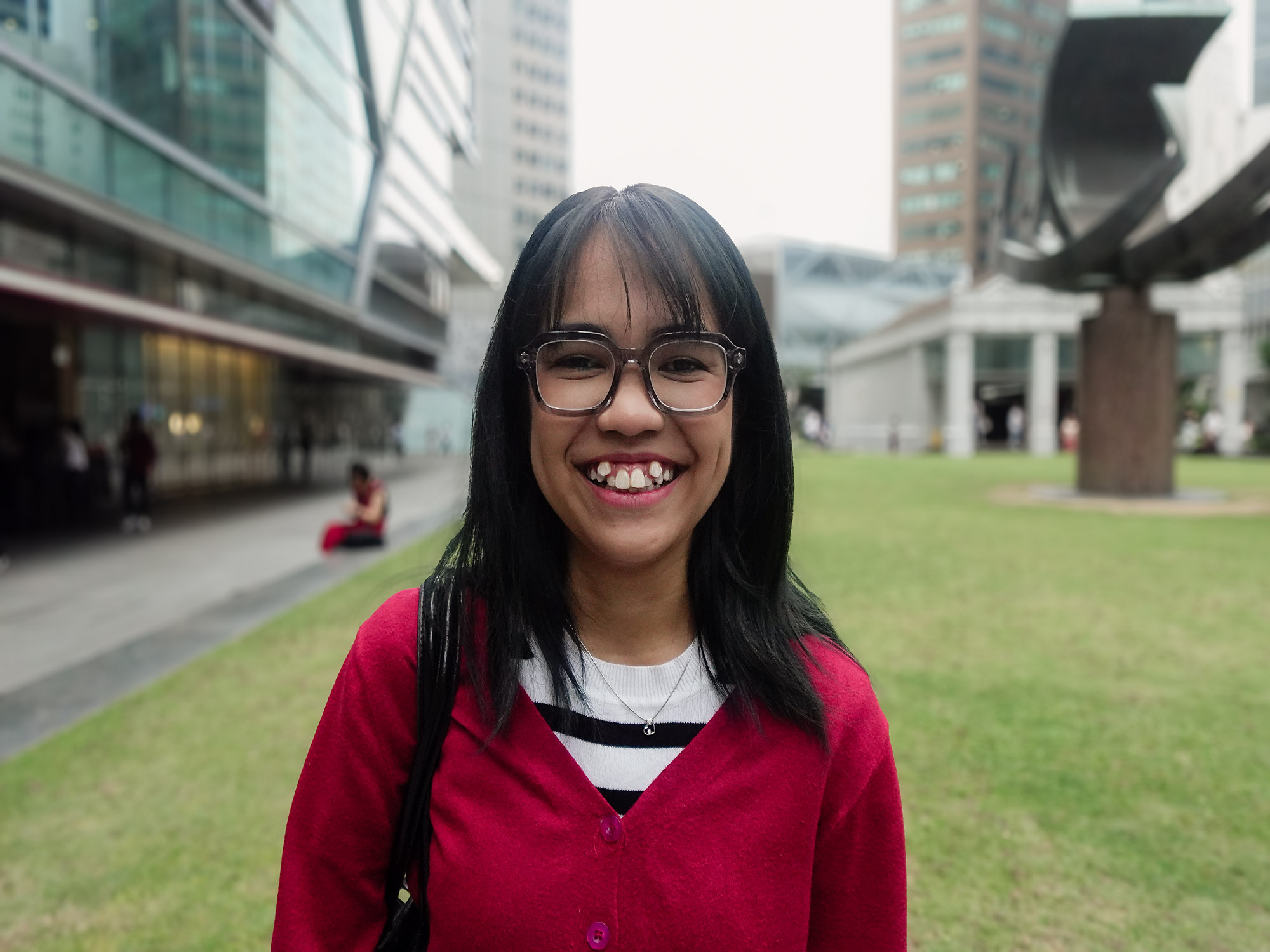 A natural portrait capturing personality through soft light and a relaxed urban setting.
